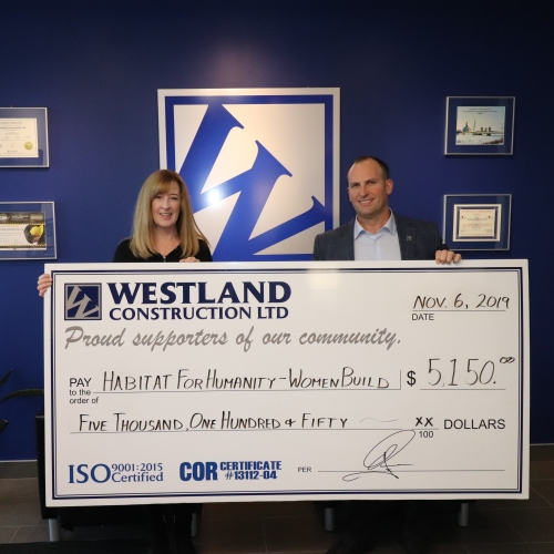 At our 20th annual golf tournament, all proceeds from the hole sponsorships went towards Habitat for Humanity's Women Build, supporting Maurine and her 3 daughters. Pete was happy to present this check yesterday!