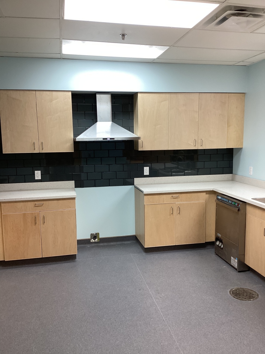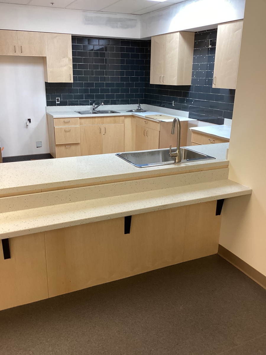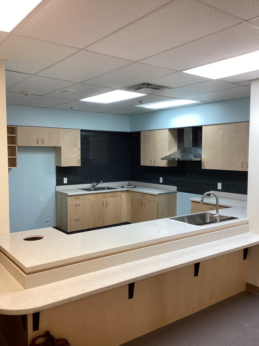 Project consisted of renovation the daycare kitchen including new sink, new plumbing, new flooring, cabinetry, countertops and paint.