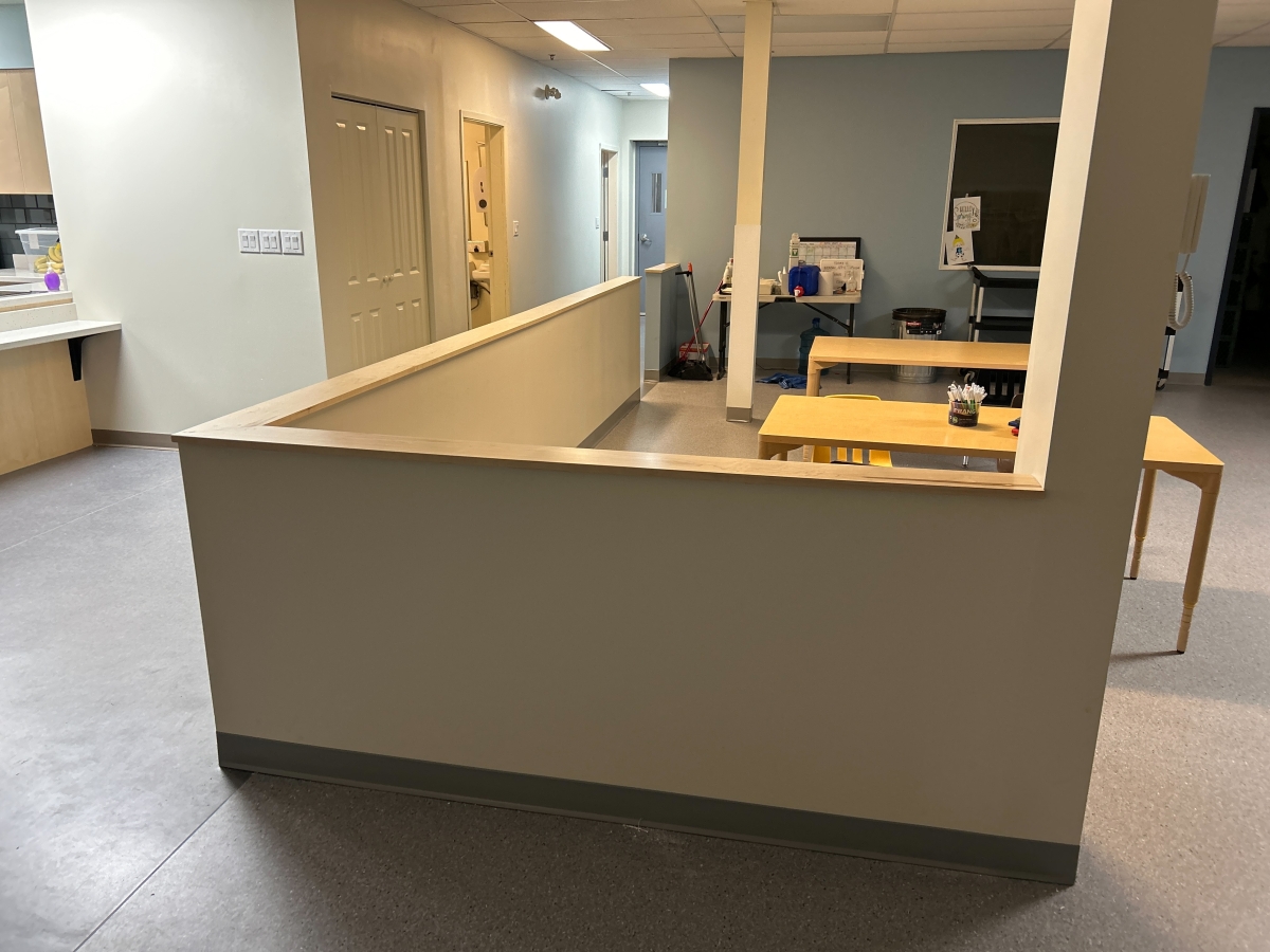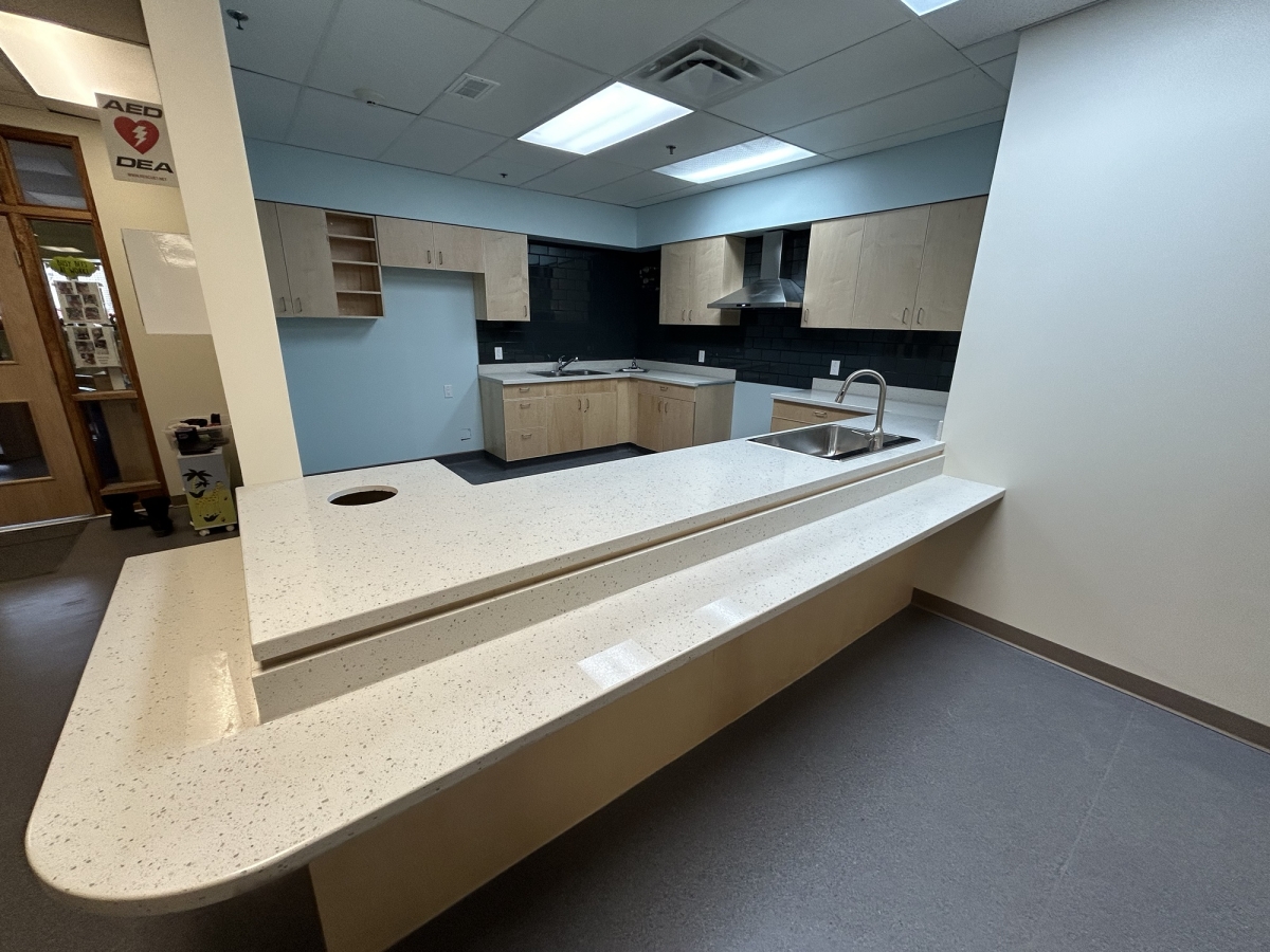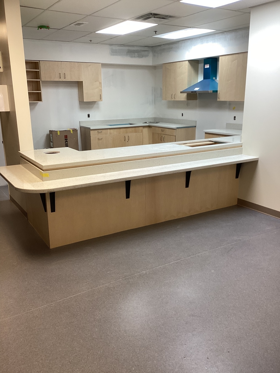 Project consisted of renovation the daycare kitchen including new sink, new plumbing, new flooring, cabinetry, countertops and paint.