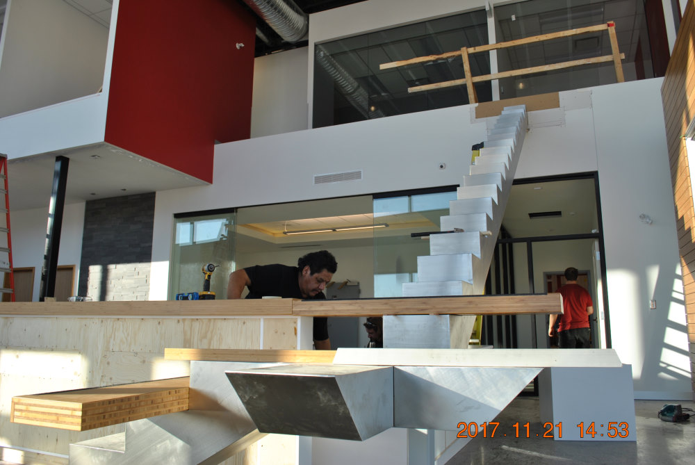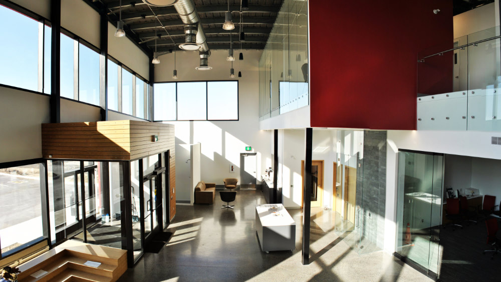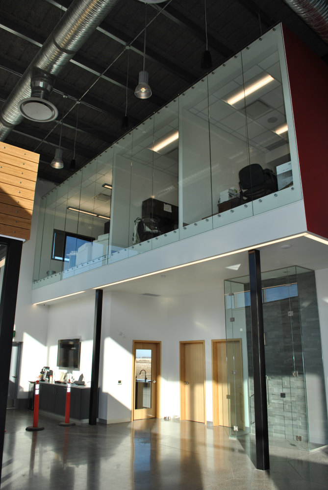 The new location of Fort Rouge Glass fittingly features a fresh-looking glass façade. Glass is also featured heavily as you enter the building. The two levels of office and show room space feature an eye-catching staircase along with beautiful glass wall panels and sliding doors. There is also a large fabrication and warehouse facility custom built to better service their customers' needs.