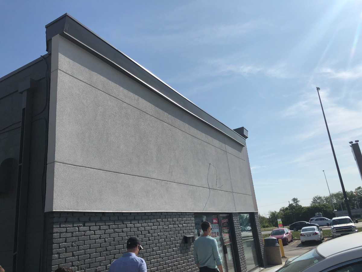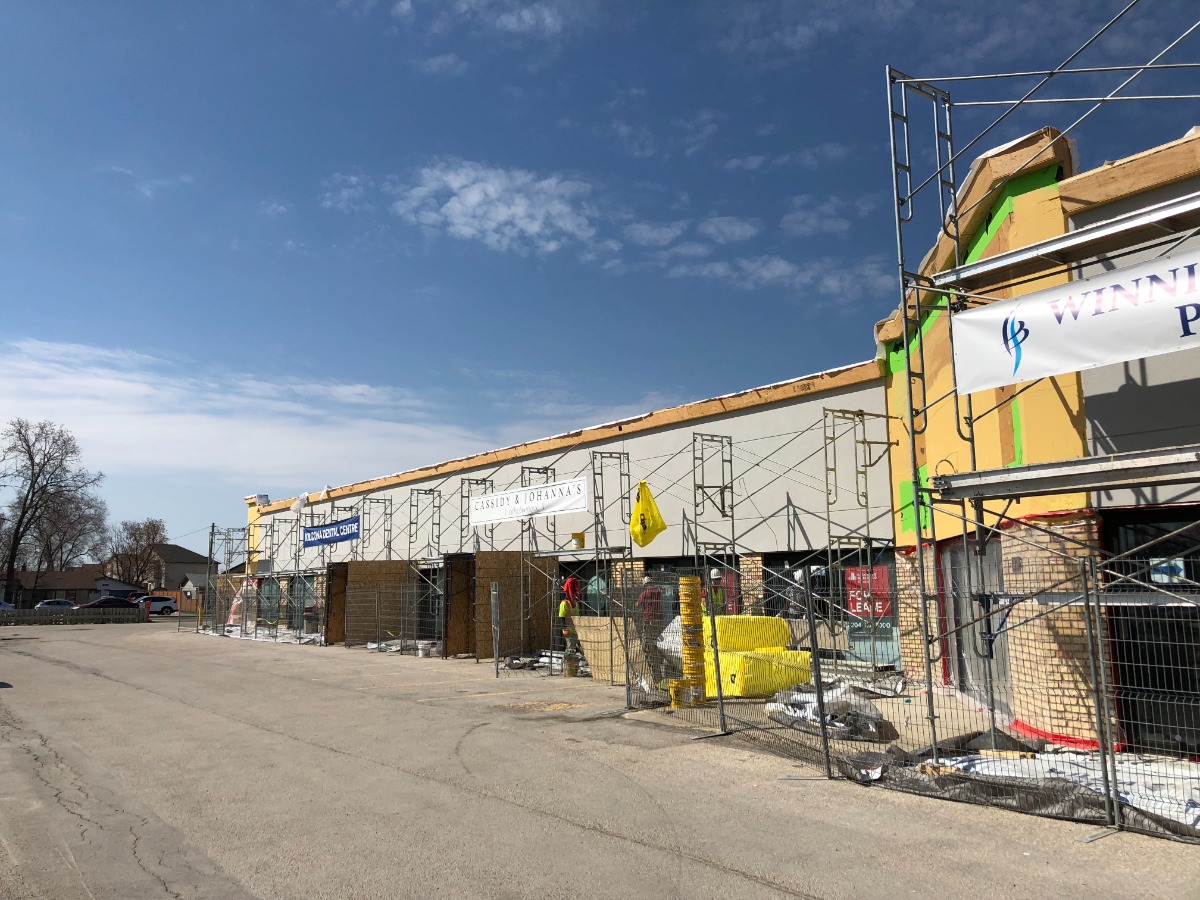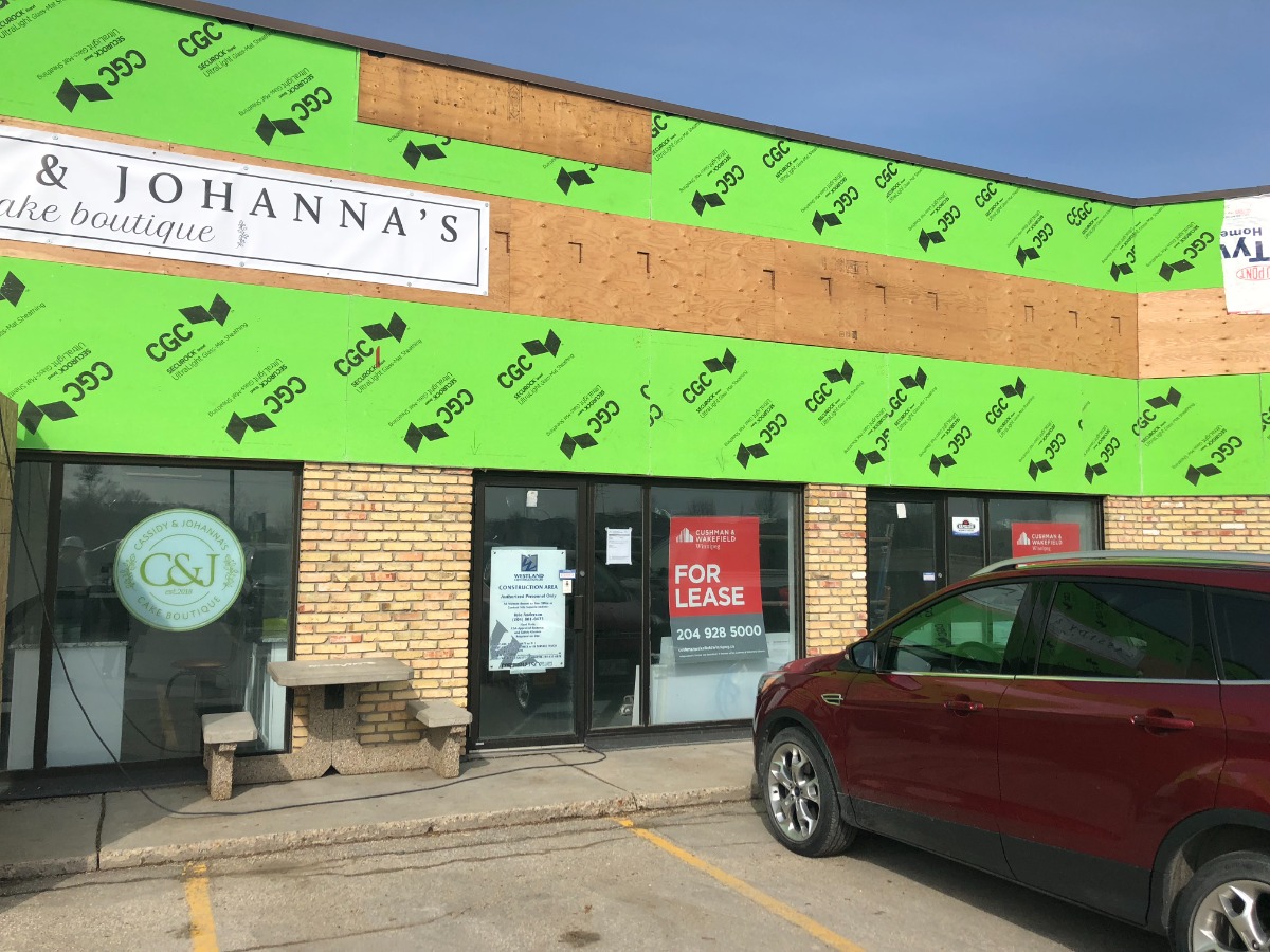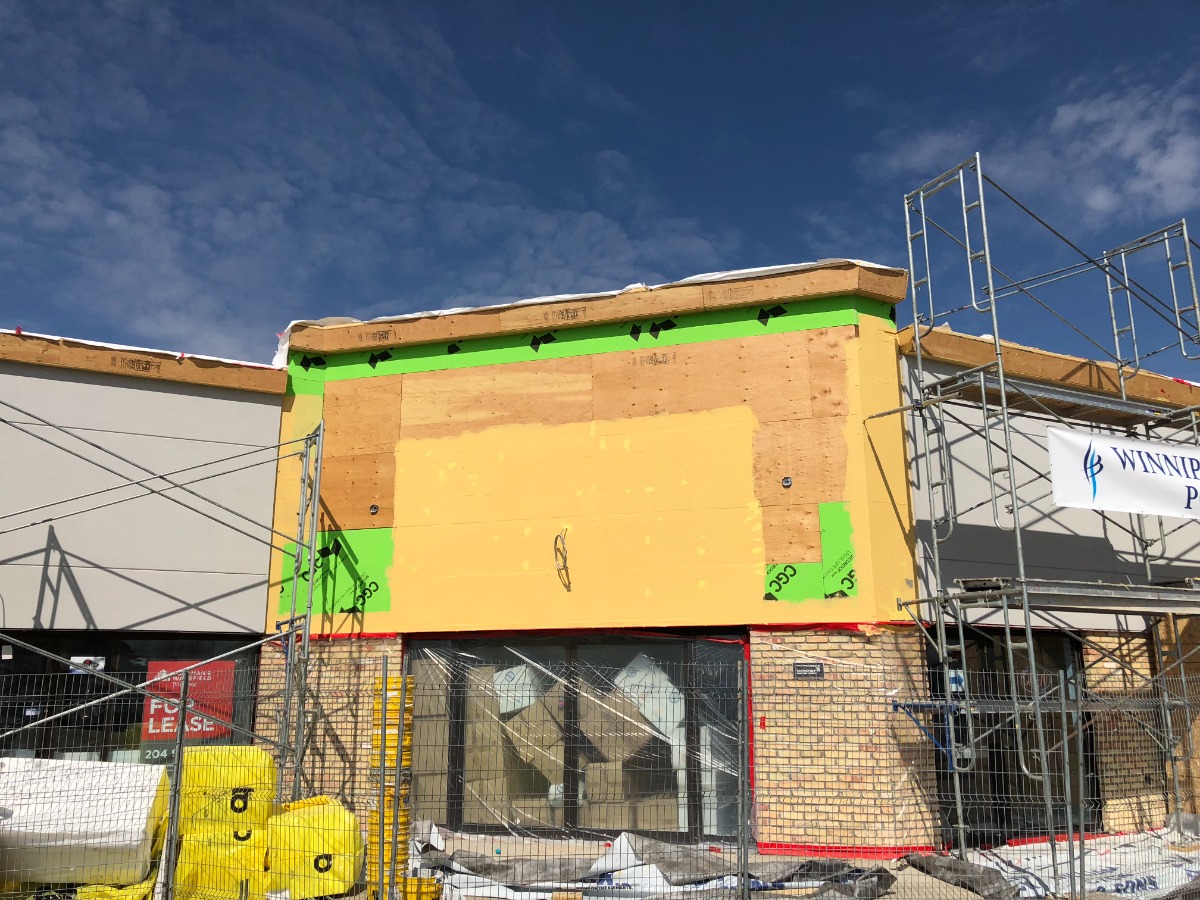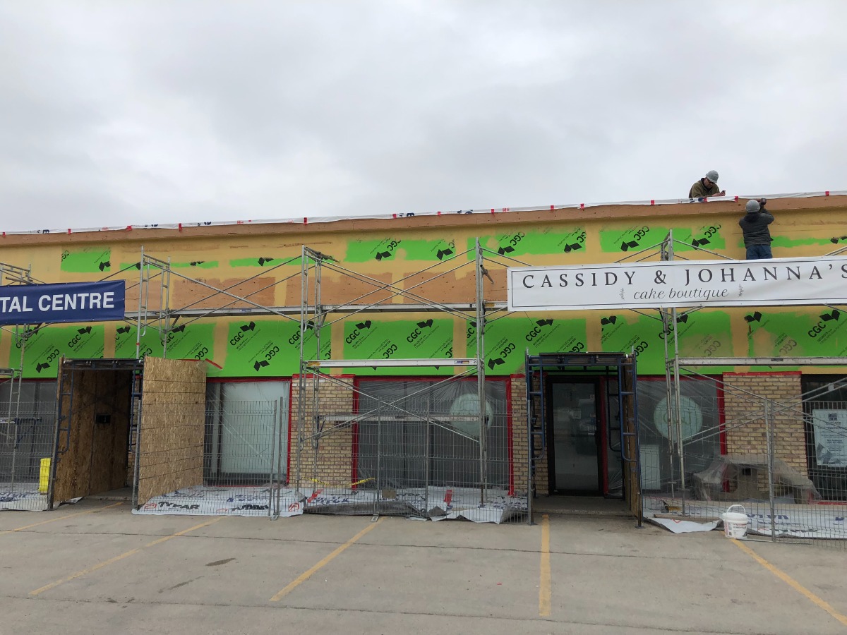 Exterior upgrades to the strip mall at 271 Grassie Blvd, including new roofing, siding with acrylic stucco and lighting.
