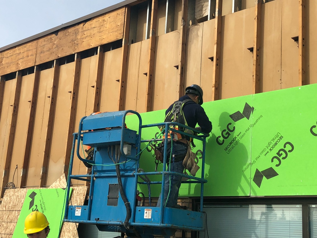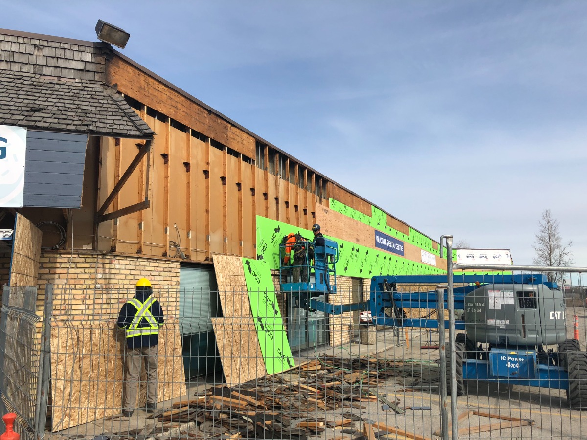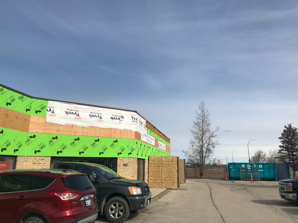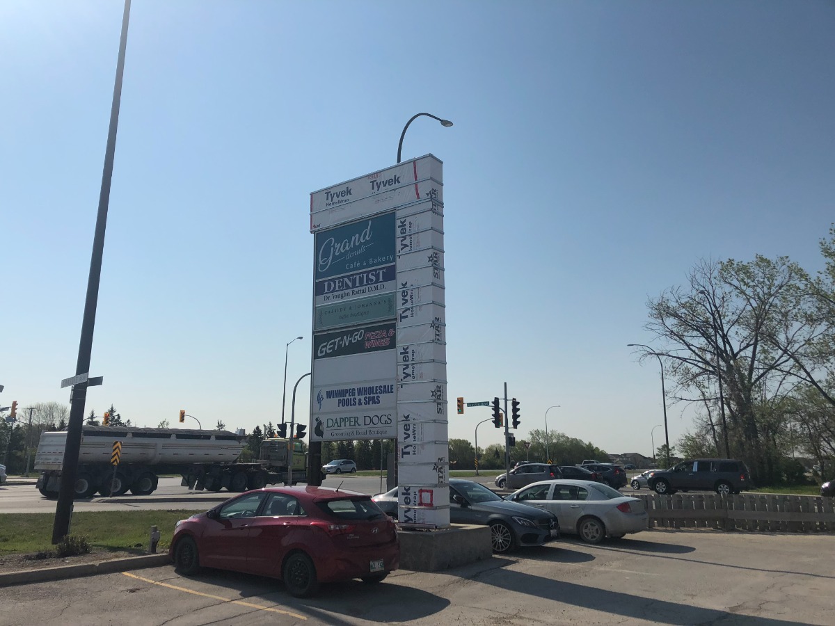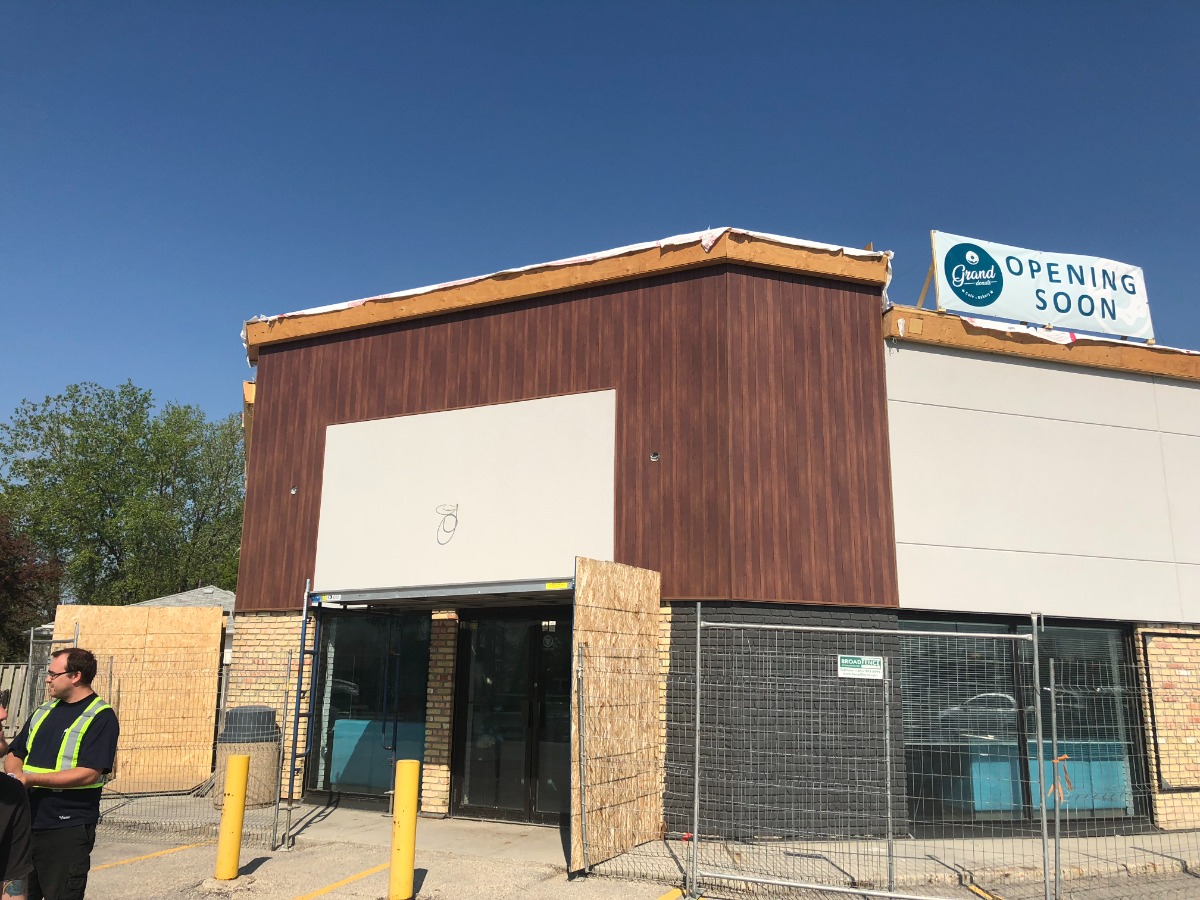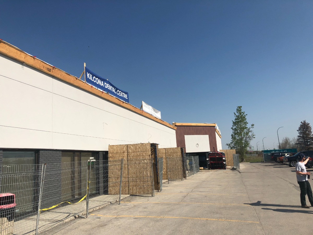 Exterior upgrades to the strip mall at 271 Grassie Blvd, including new roofing, siding with acrylic stucco and lighting.