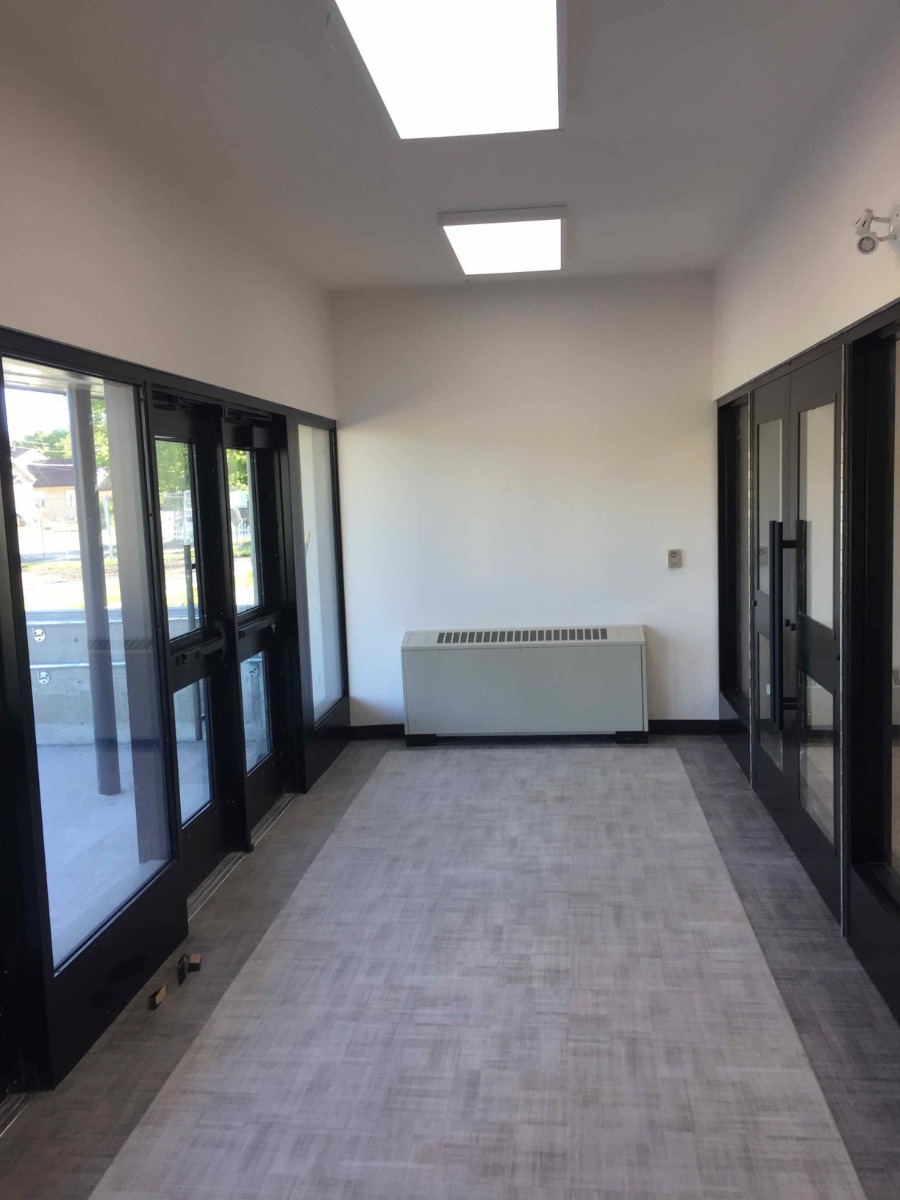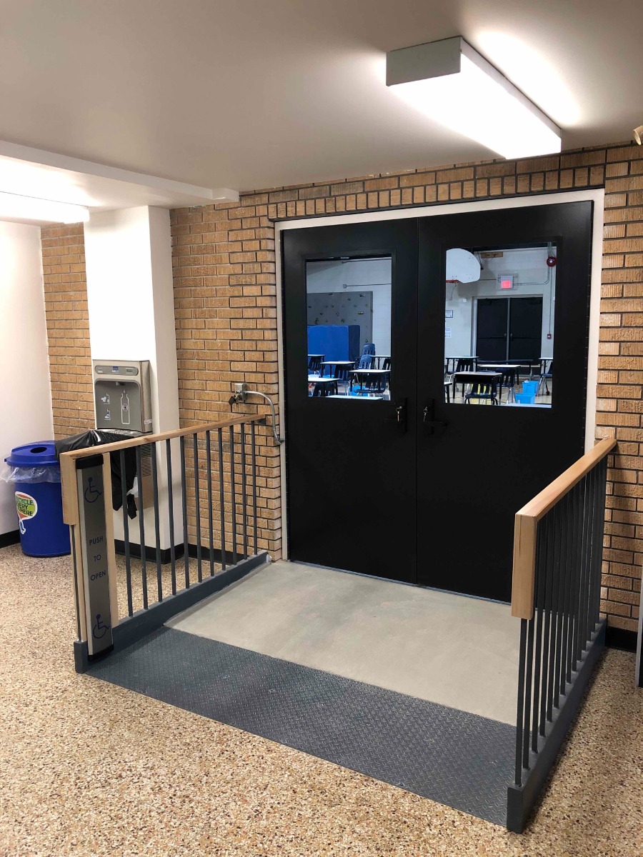 Scope of work comprised the demolition of old entrance and installation of new accessible entrance with new stairs, landing and ramp. Exterior works also included a new concrete planter, gravel pathway and asphalt. On the interior side, an old hallway was converted to an accessible grooming room. Offices layout on the 2nd floor was redesigned with new layout, new M&E to suit, and new finishes. Gymnasium went through some accessible upgrades as well, including installation of double doors, accessible ramps and paint.