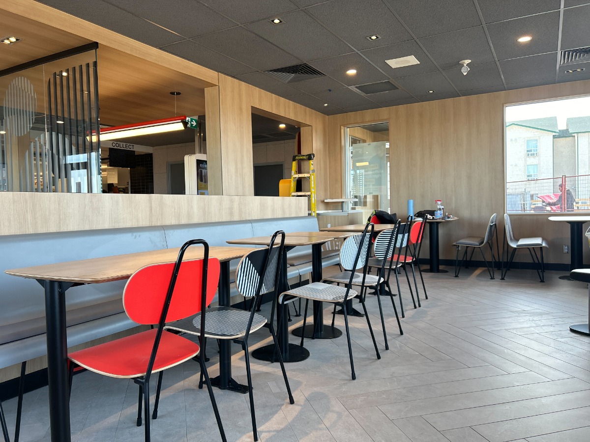 Renovation of the McDonald's in Dauphin MB, including extending the kitchen space and all new finishes throughout the dining area, washrooms and part of the kitchen.