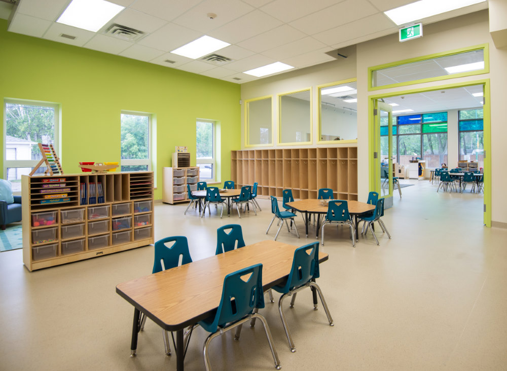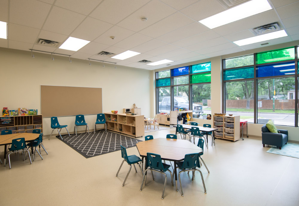 Westland was pleased to work with the Rady Jewish Centre and Architecture 49 on this historic and unique renovation project that saw what was formerly a fire station repurposed into a beautiful new daycare facility. The general exterior design was preserved by converting the two large overhead doors into very large windows providing an abundance of natural light. This state-of-the-art facility offers care for four infants, 12 toddlers and 32 preschoolers.