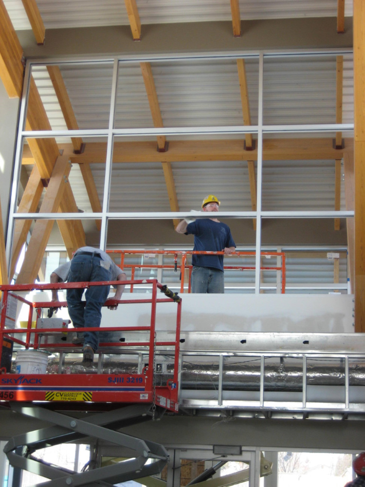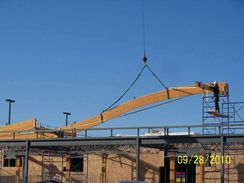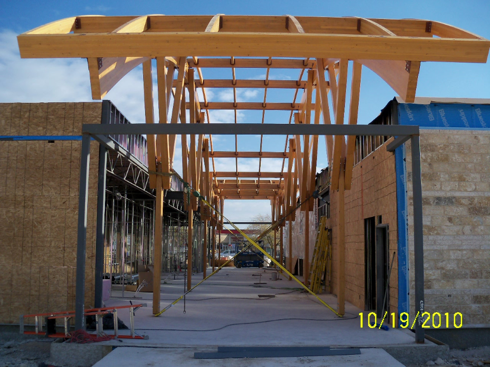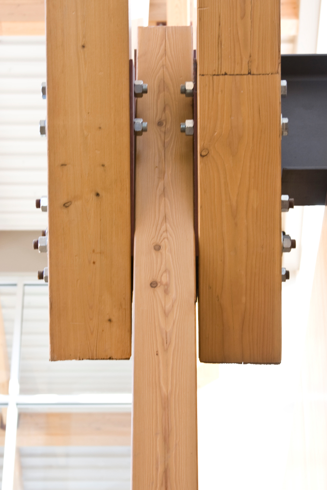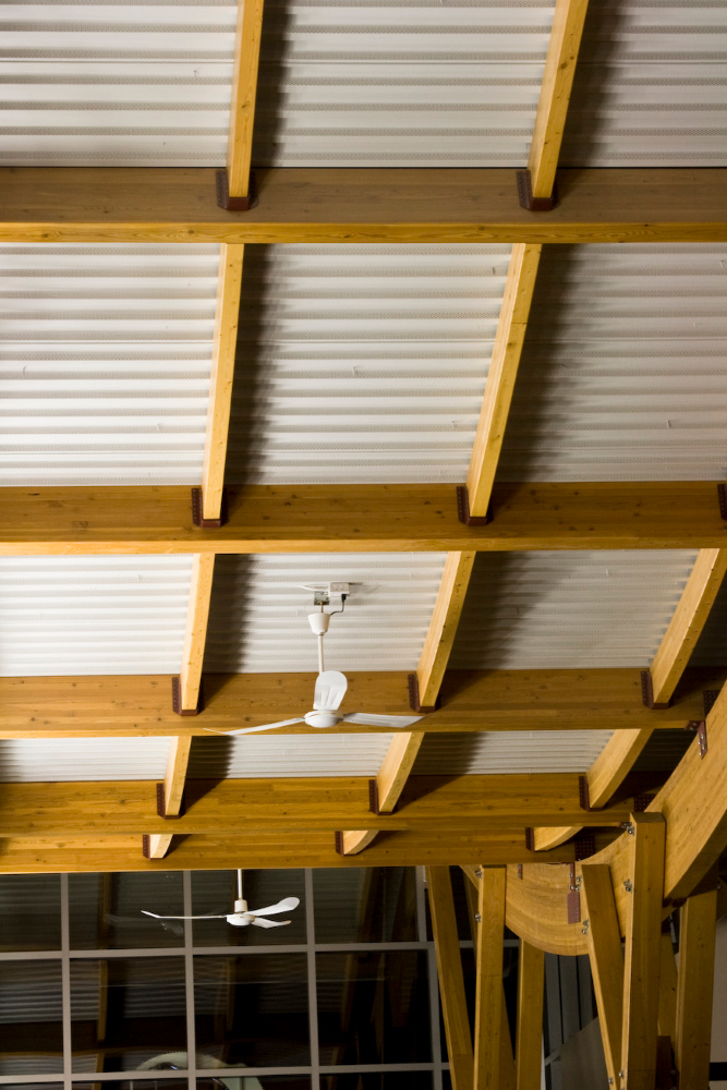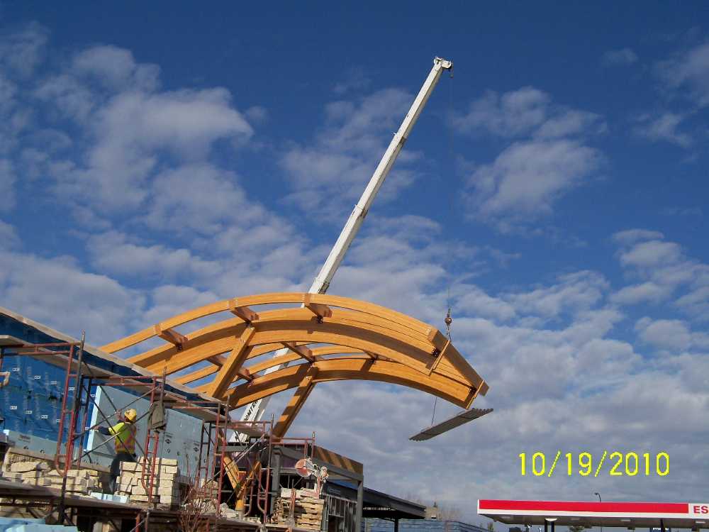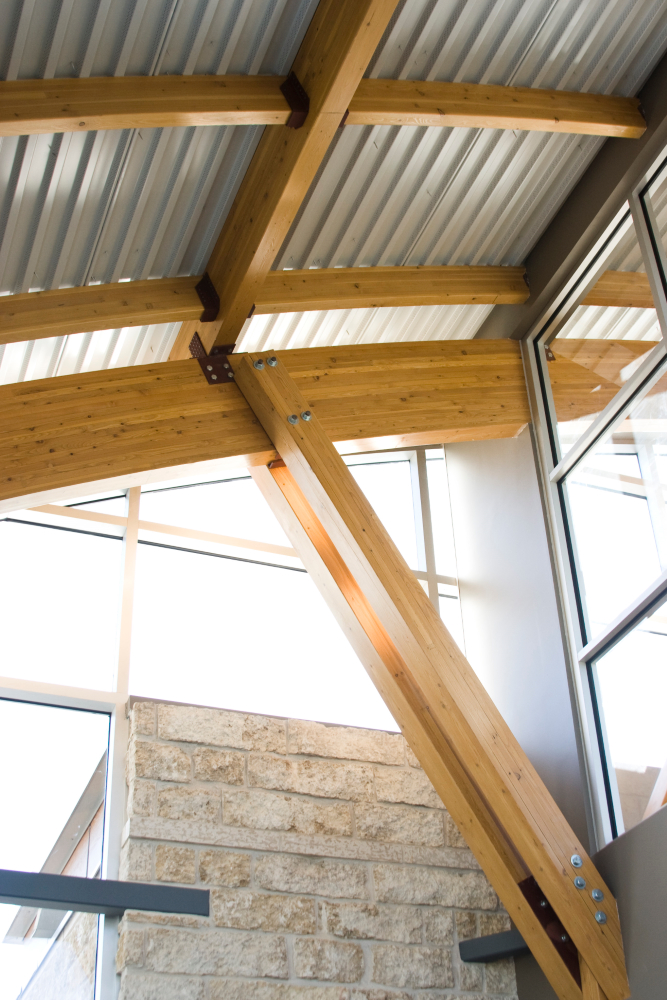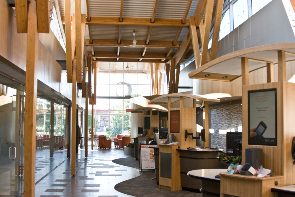 Admiring the graceful curves of the lofty ceilings in the central atrium area of Sunova Credit Union's building located in Winnipeg's Riverbend, your eye is easily drawn to the beautiful wood beams that make this space possible. The wood beams are actually layers of carefully selected timbers joined by means of heat, pressure and adhesives called glulams.