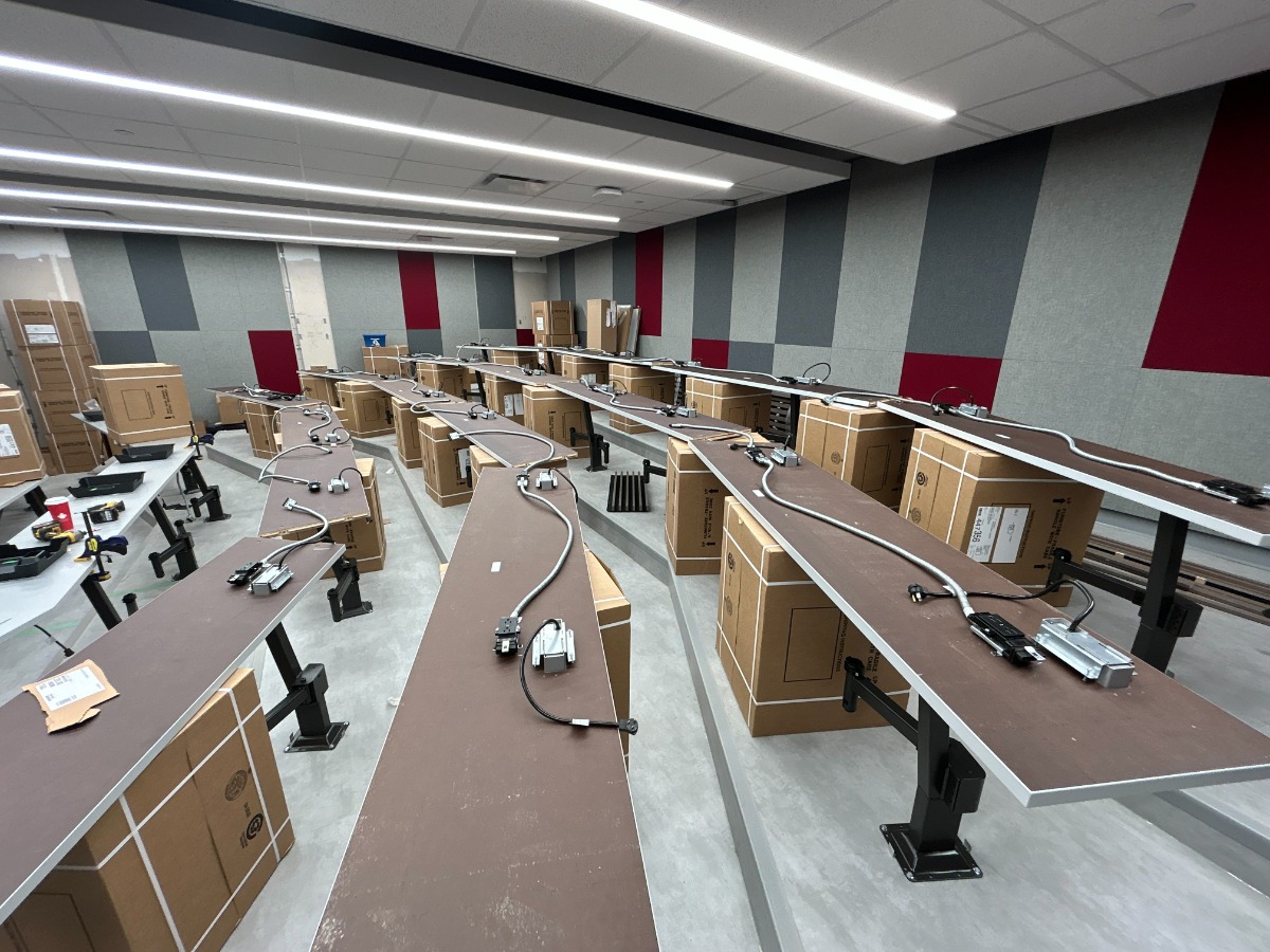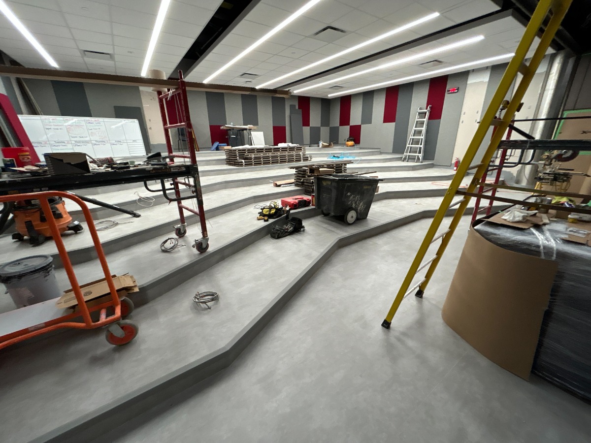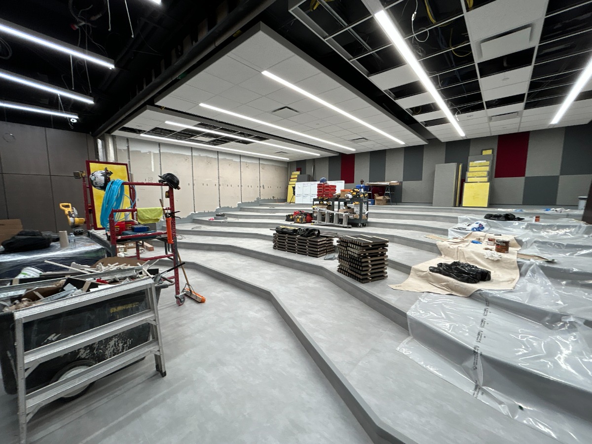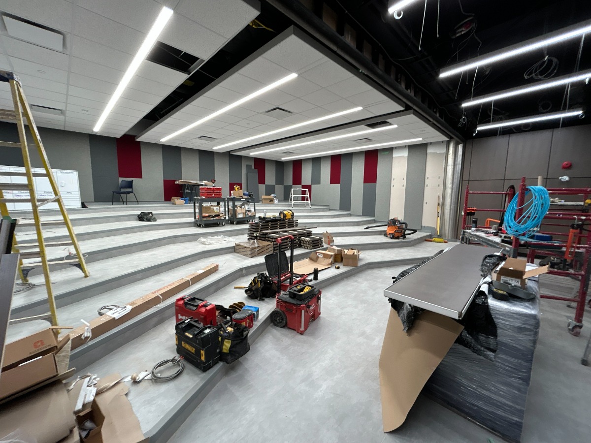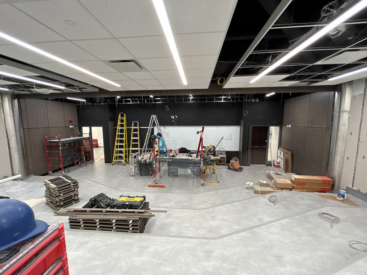 Project consisted of demolition of existing finishes, installation of new audio-visual system, VAV, lighting and architectural finishes throughout lecture rooms. These finishes included new wood panelling, paint, ceilings, flooring and furniture.