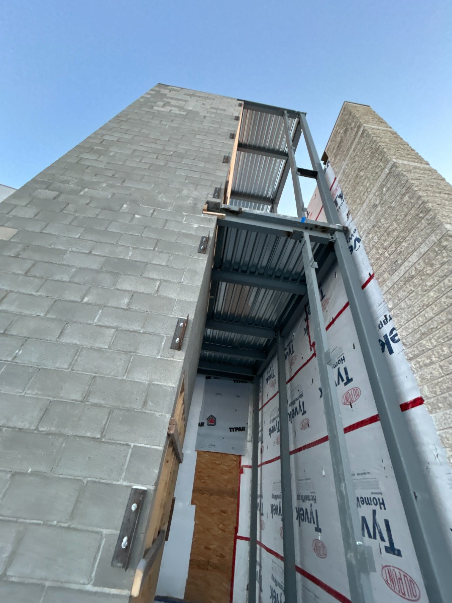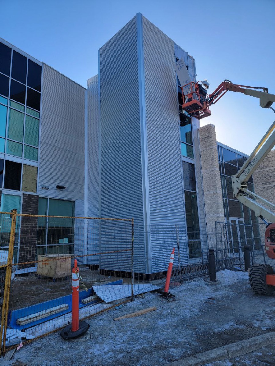 The project is a building addition to accommodate a new 2 level elevator. The project scope includes new construction of a 90 square meter net floor area.
